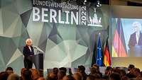 Verteidigungsministerin Christine Lambrecht hielt zum Auftakt der Bundeswehrtagung 2022 eine Rede vor rund 400 Teilnehmerinnen und Teilnehmern